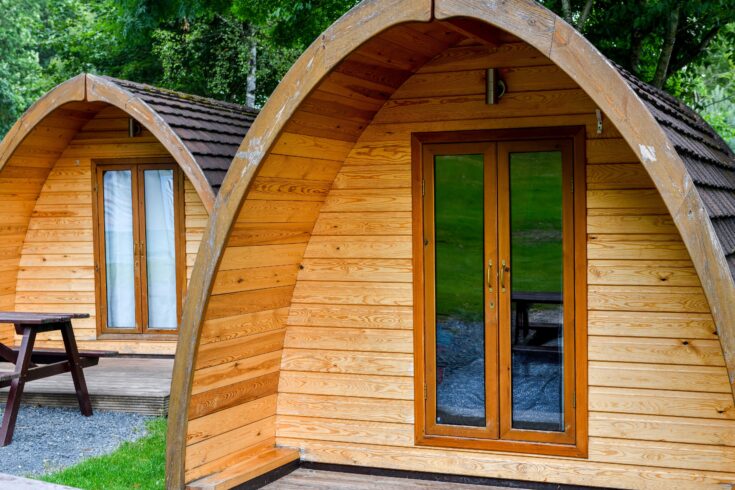 Camping pods are ideal for light travellers, or hikers who don’t want to carry a large tent around with them. They are great for a weekend adventure, easy to keep clean and dry and there’s often a small deck outside and plenty of space to run around and explore.