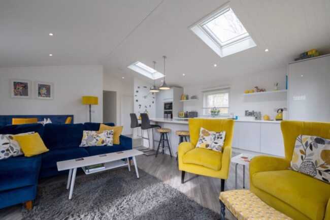 The living area includes a high-specification kitchen, plus a living space and dining area.