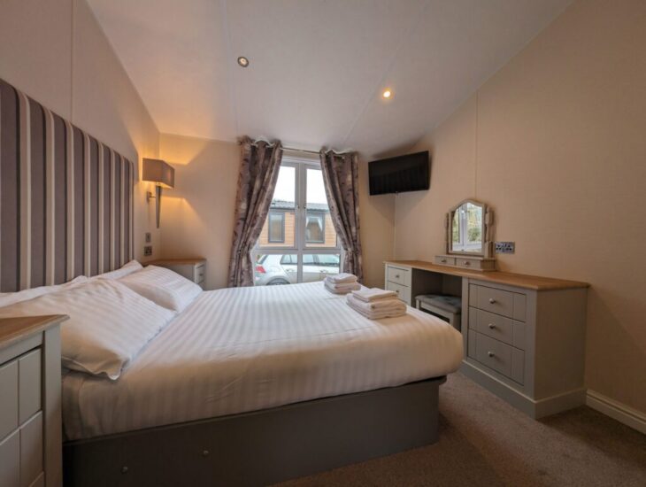 One of South Lakeland Leisure Villages best kept secrets, Capernwray 20 is the definition of a luxury holiday home. It’s time to open a bottle of fizz and take a dip in a hot tub with exquisite views. Situated on the lodges private outdoor area, the glass front decking grants views across the lake to the 5* facilities. Alongside this, the lodge also has three spacious bedrooms; a large master with an en-suite and shower, a second double bedroom and a twin room.