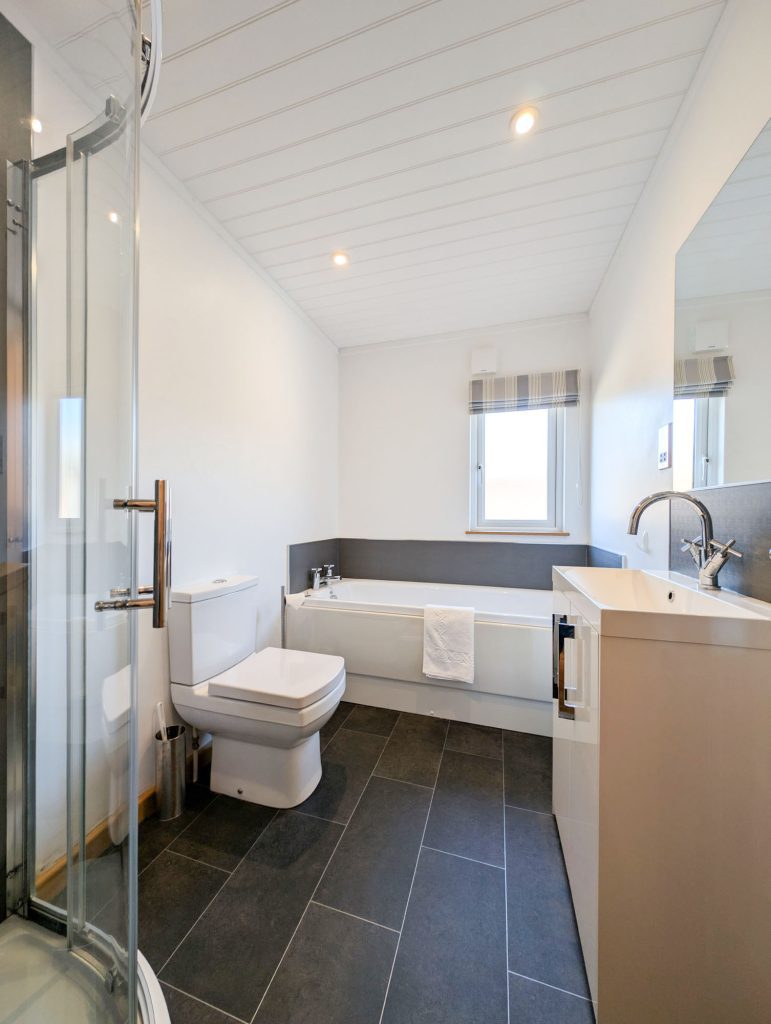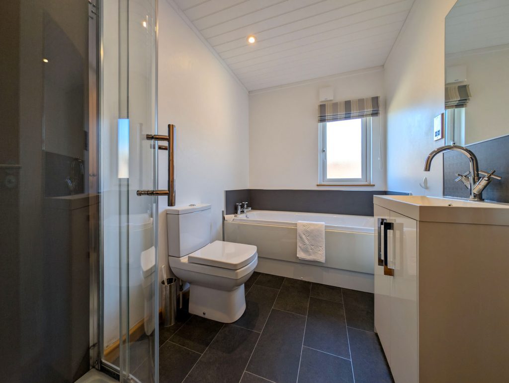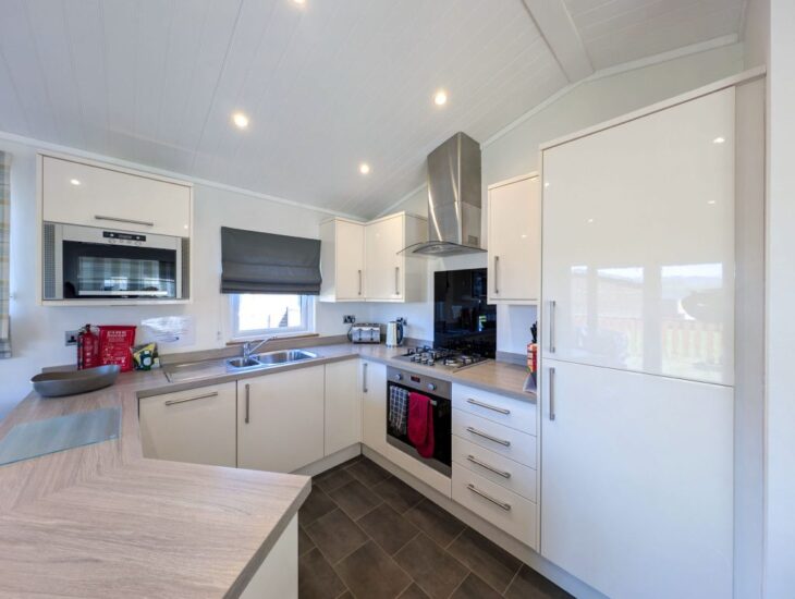 There is a cosy & tradition feel with living and dinning area, with large patio doors allowing in plenty of light and creating a feeling of even more space. The kitchen is sleek and modern, and well-equipped for all your self-catering needs.