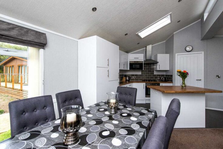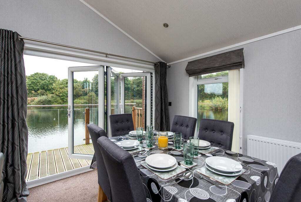 Gressingham 50 is a beautiful lodge in a fantastic location! The lodge has character in every room and feels homely as soon as you step through the door. Featuring 3 bedrooms with 2 double rooms, 1 with en-suite plus 1 twin room. This lodge is perfect for large families or groups of friends. The kitchen and living area is all based around an open plan setting with an island in the kitchen creating additional space to enjoy your cooking. The living area opens up onto a large decking area with plenty of seating included, perfect for relaxing by the lake, the decking is glass fronted to prevent interruption to the lakeside views. This lodge is situated at the top of the lake which makes it ideal to see all the wildlife on the water especially in the spring time.