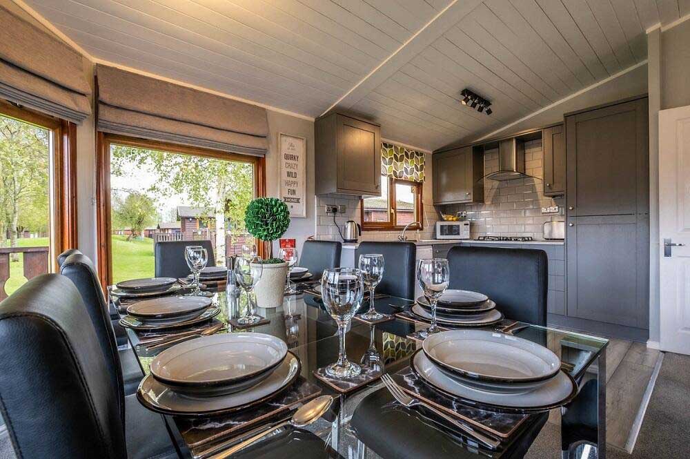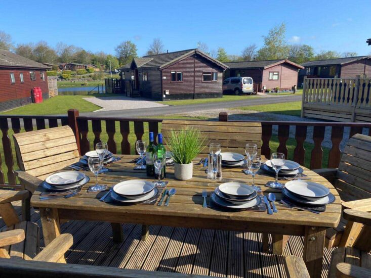 The lodge offers a gated decking with partial views of the lake, garden furniture perfect for enjoying the sunsets over the hills whilst dining alfresco.