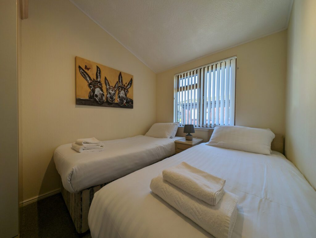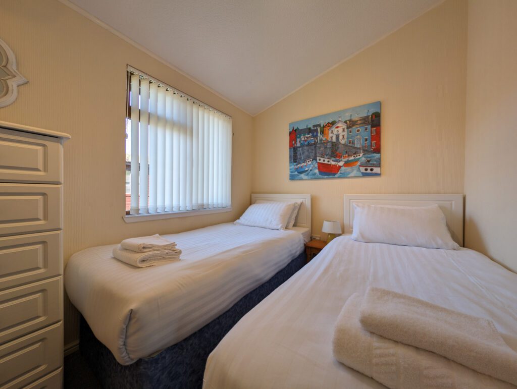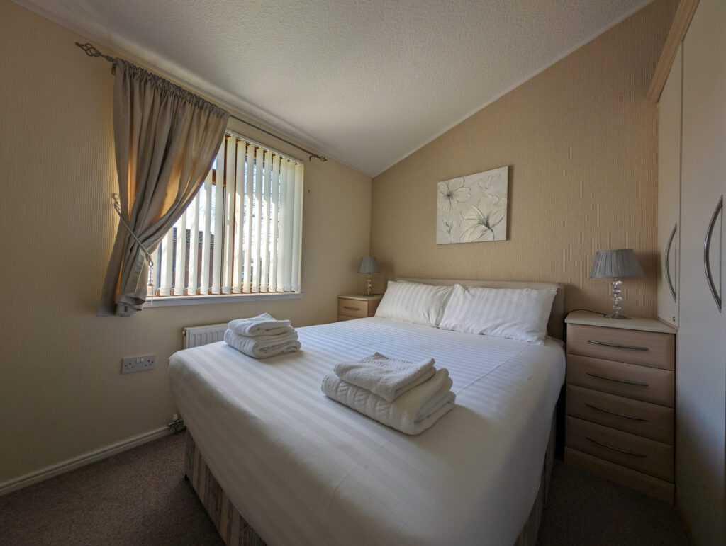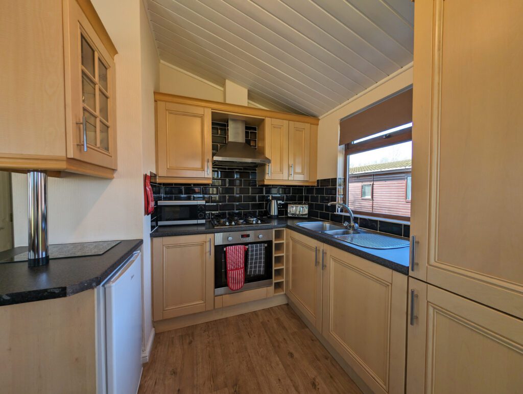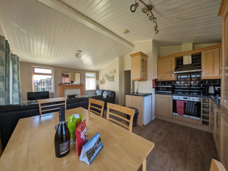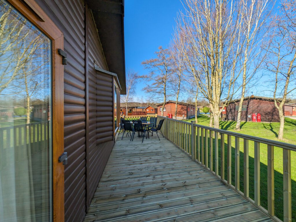 Lakeside 30 is a cosy lodge featuring open plan living throughout the kitchen, dining and living areas which open up onto a large decking hosting patio chairs creating an extended area for you to relax. The lodge features one double room with en-suite and two twin rooms, sleeping 6 in total. The main bathroom features a bath with overhead shower and is also a very good size. The lodge is also a short walk away from the leisure facilities and Waters Edge Bar & restaurant. This lodge is Pet- friendly and WI-FI is included.