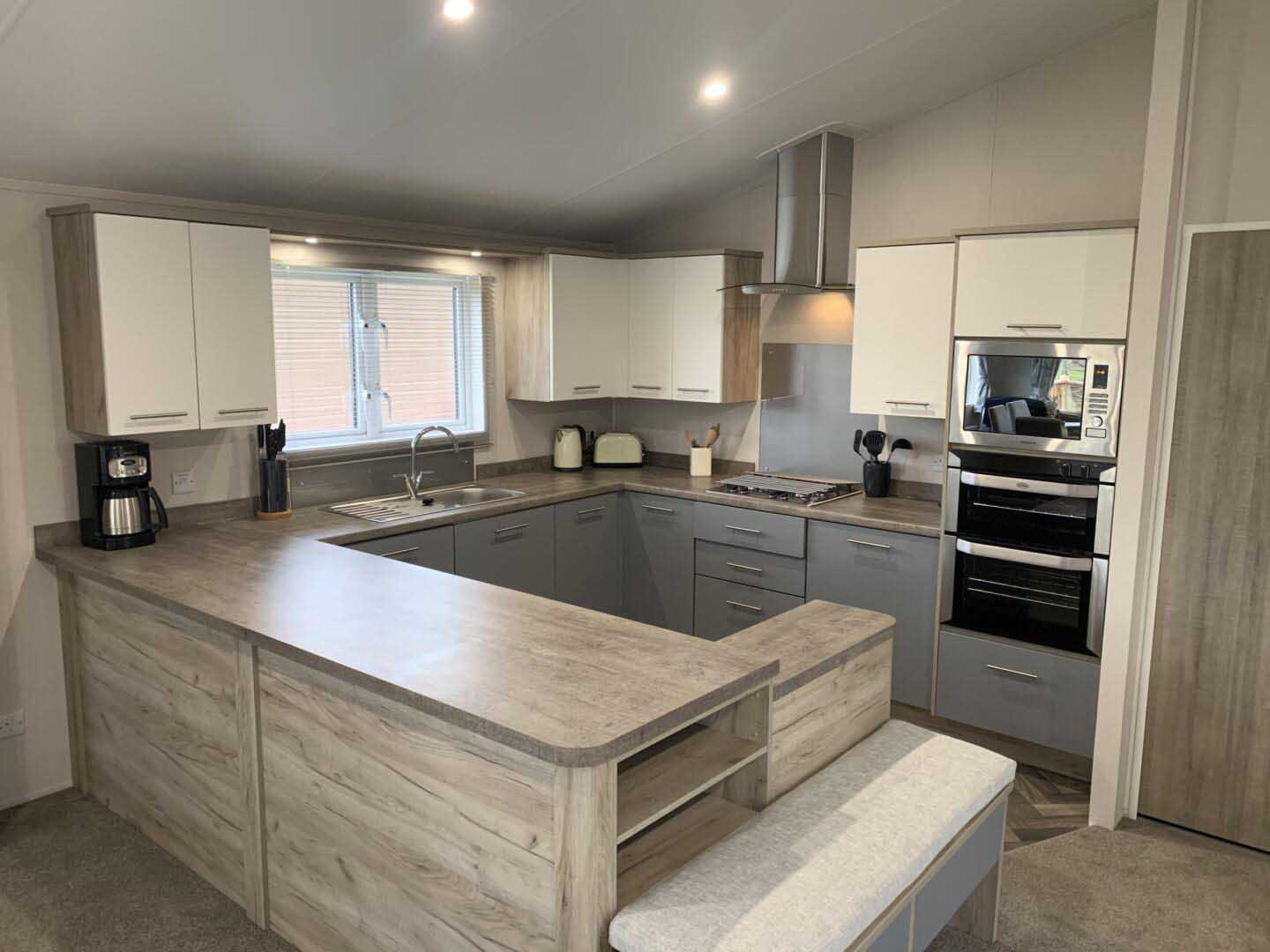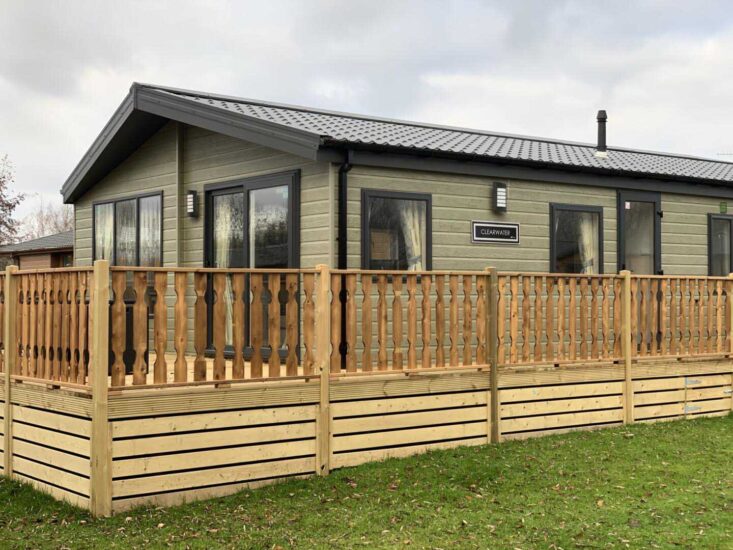 The perfectly located Sherwood 35 lodge in a quiet part of the park which over looks a stream. This lodge is made up of three good sized bedrooms, an en-suite double and two twin rooms, as well as a spacious main bathroom. The lodge is finished to a high standard throughout inclusive of a fully equipped kitchen and extra storage space. Also included is comfy patio furniture on a private balcony as it faces the opposite way to all the others, perfect for relaxing on after a long day. The open plan living and dining area that includes a speaker system in the ceiling and 3 TV’s throughout the lodge makes this the perfect lodge for the whole family.