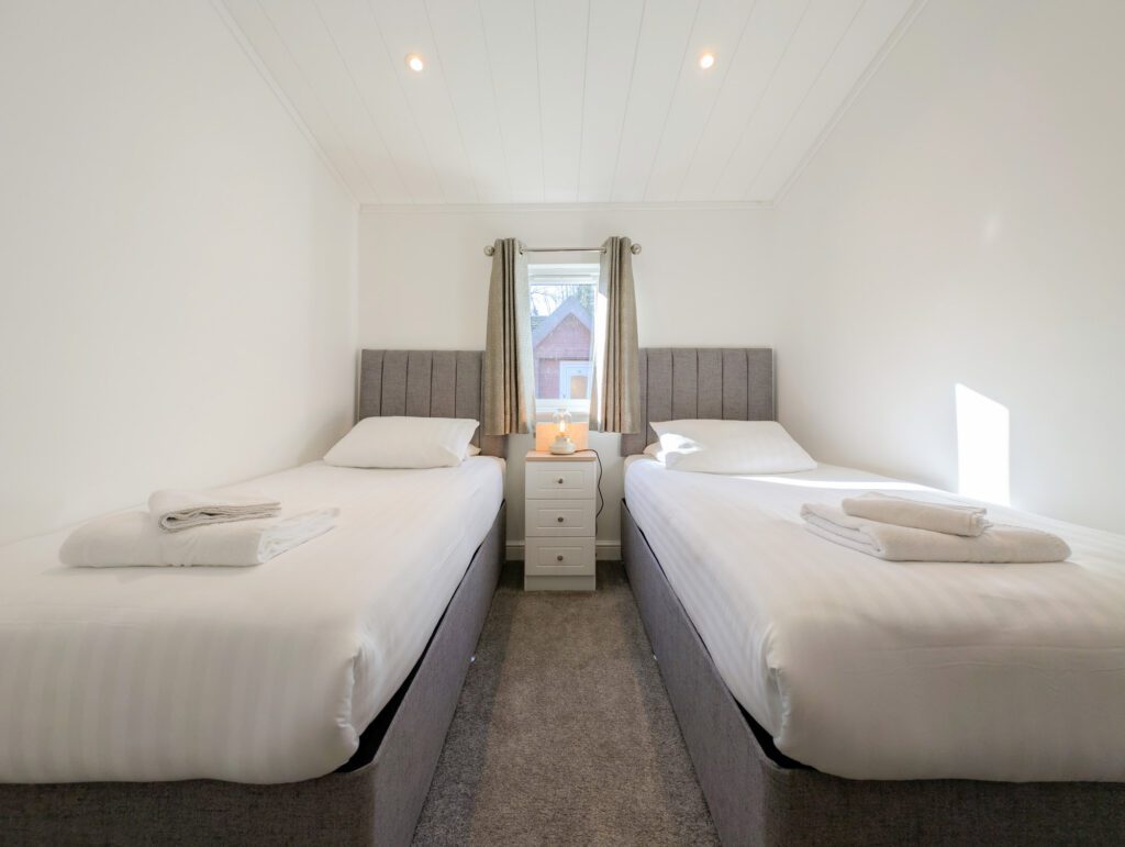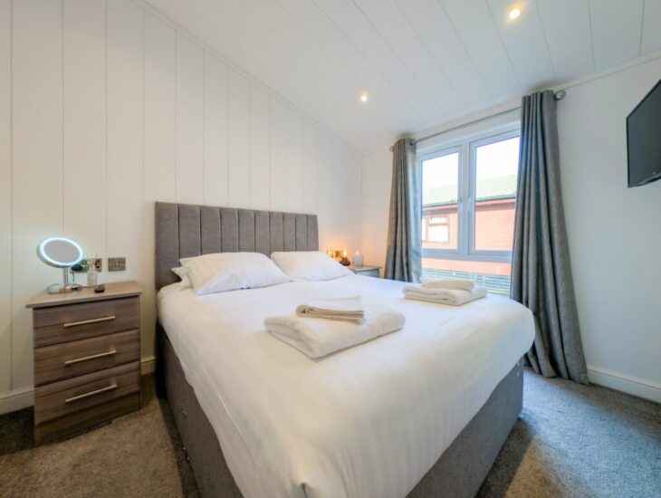 This stunning 3 bedroom lodge ticks all the boxes when it comes to style and luxury. This three bedroom lodge comprises of 2 double en-suite bedrooms and a twin bedroom with access to a family bathroom.