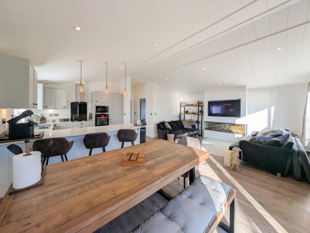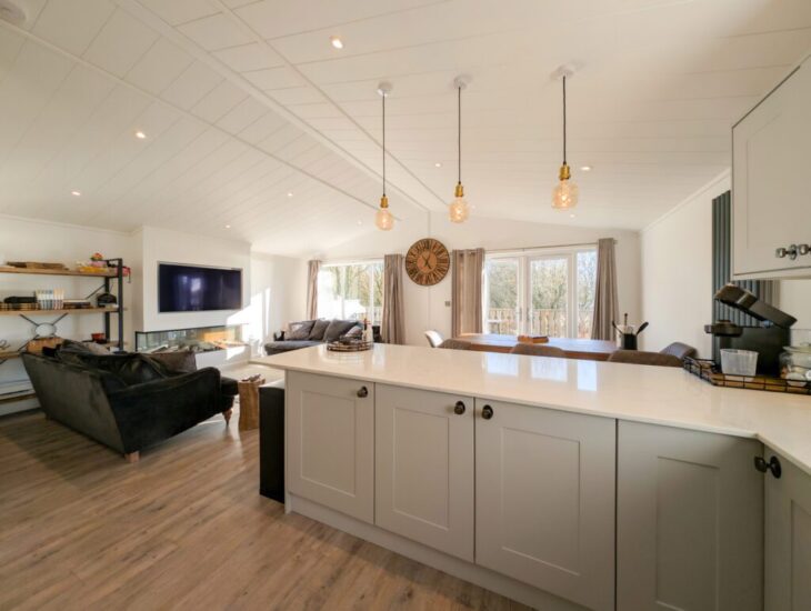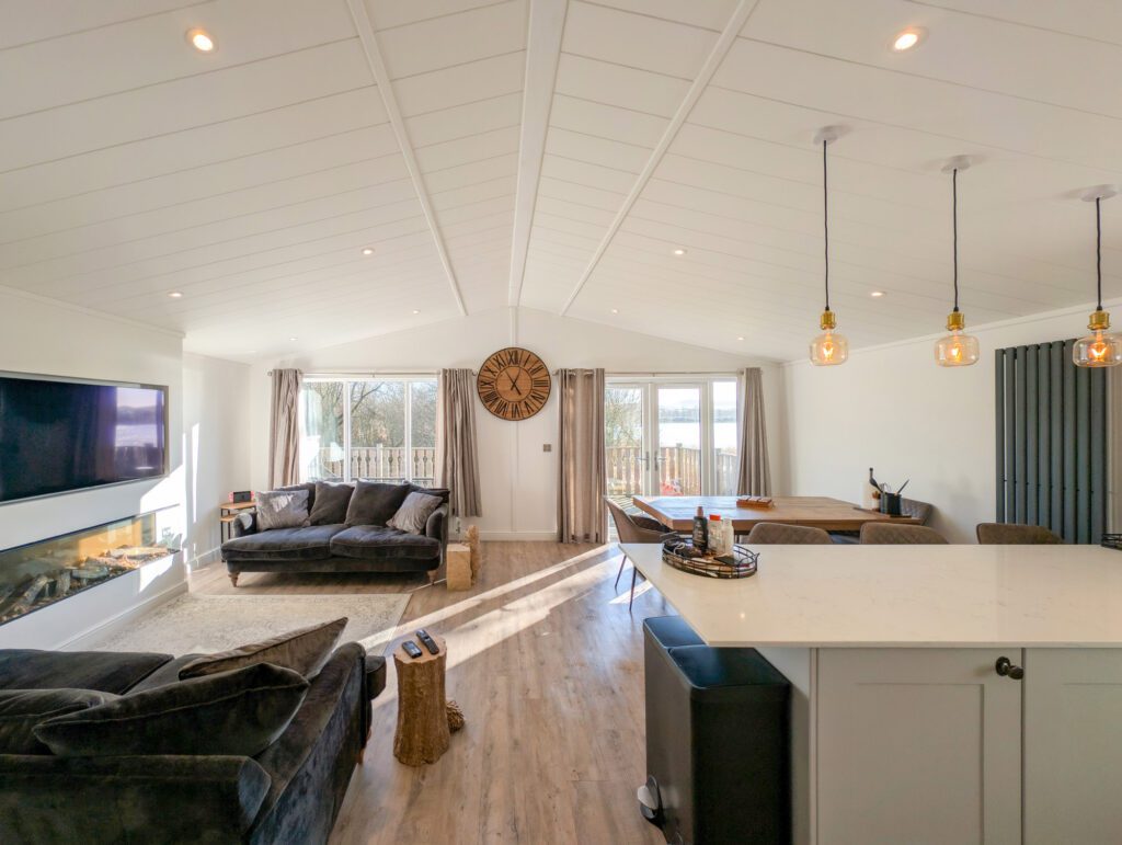 The lodge is finished to a high standard with contemporary fixtures and fittings throughout and benefits from a large, open plan, lounge, kitchen and dining space.