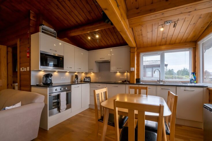 The majority of our holiday accommodation is log cabins. These have either 2 or 3 bedrooms, sleeping up to six people, and pet friendly options are also available. Every cabin has a well-equipped kitchen for all your self-catering needs, as well as dining space, a cosy living room, and a bath or shower room.