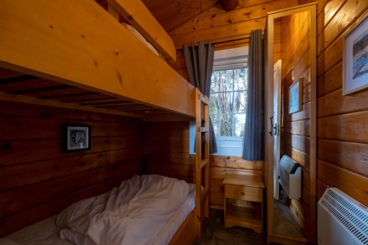 The bedrooms are off the back of the lounge, having a double bedroom with a 4’6 double bed and a single bedroom with a 3’ bunk beds. Access to the double bed is from both sides. All beds are made up with linen ready for your arrival.