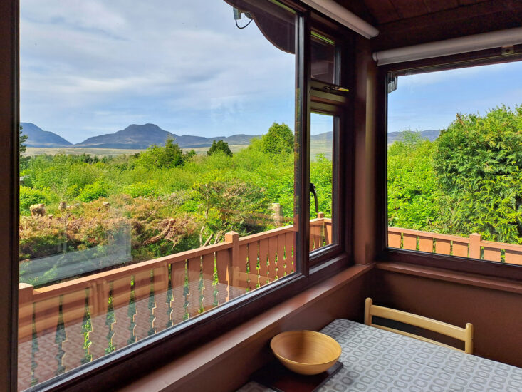The veranda has been made into an additional seating area on one side and a dining area on the other from which the views of the Rhinog Mountains can be fully appreciated.