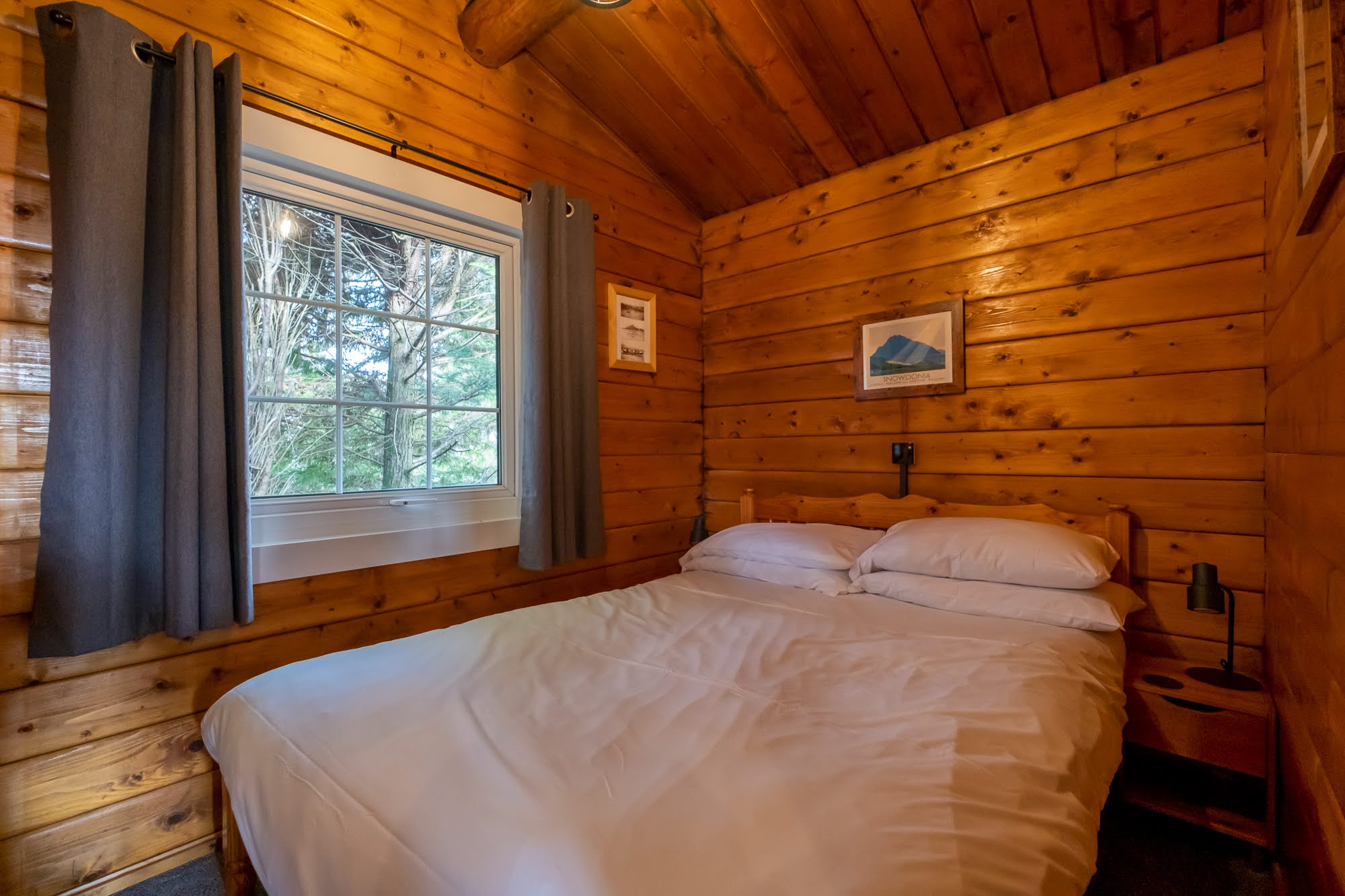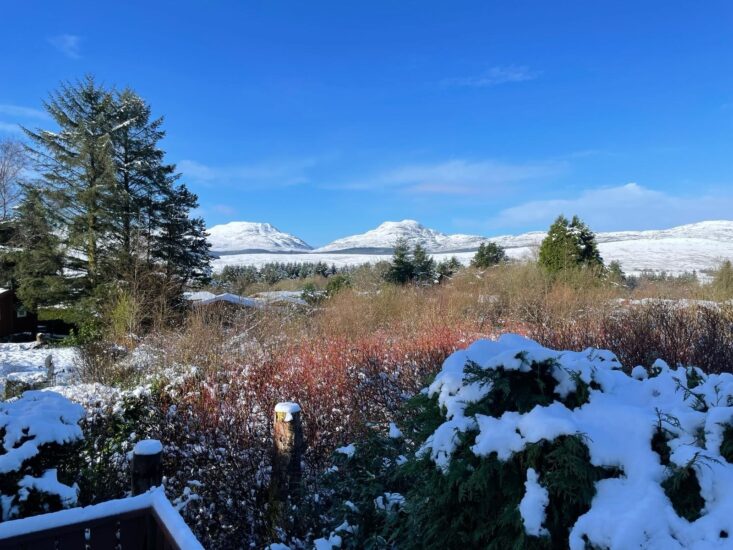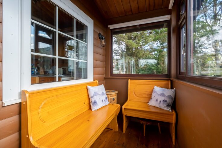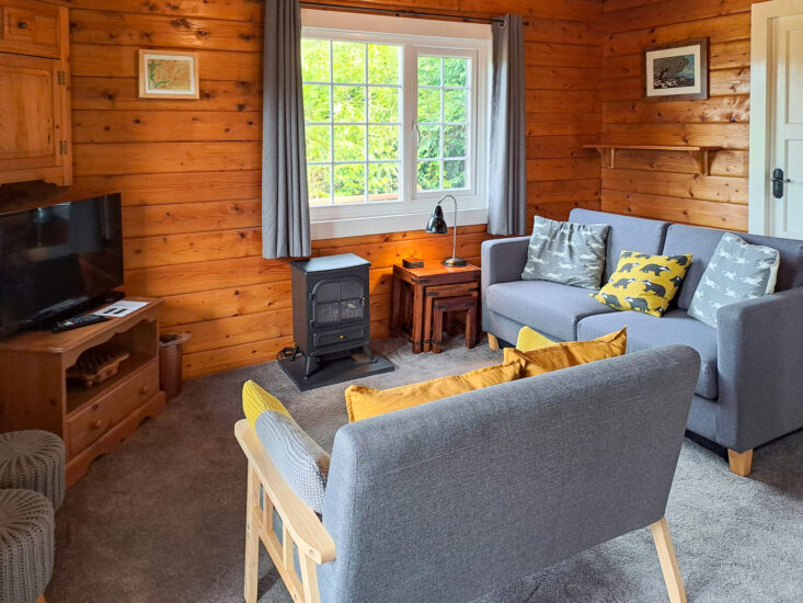 Cabin 233 is a 2-bedroom self catering log cabin sleeping 4 people. It is located towards the southern edge of the holiday village, with excellent views to the Rhinog Mountains and a small garden to the side.