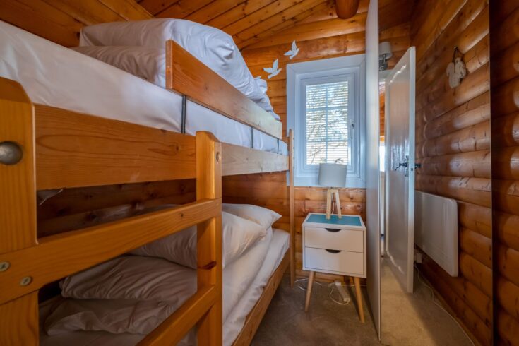 The bedrooms are off the back of the lounge, having a double bedroom with a 4’6 double bed and a bunk bedroom with 2’6 bunks. All beds are made up with linen ready for your arrival.