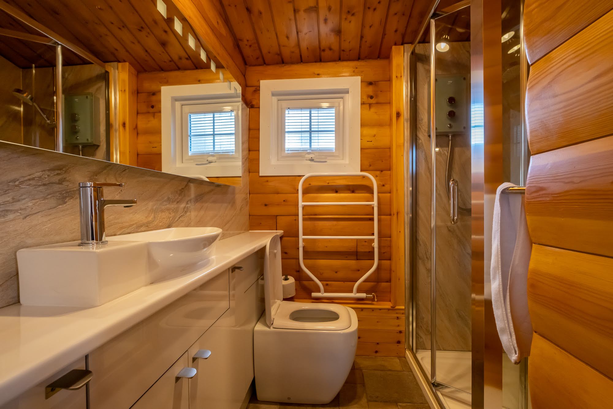 The lounge and kitchen benefit from open plan living making the cabin feel even more homely. The lounge and has a 2-seater sofa, 2 armchairs, and a TV with Freeview channels, HDMI socket and DVD player. The kitchen has all the essential kitchen appliances including an oven with a separate grill, a fridge with an icebox and a microwave. We are now offering cleaning materials in each cabin to ensure a comfortable stay with us. These include: Tea towels, dish cloths, sponge scourers, and anti-bac spray.