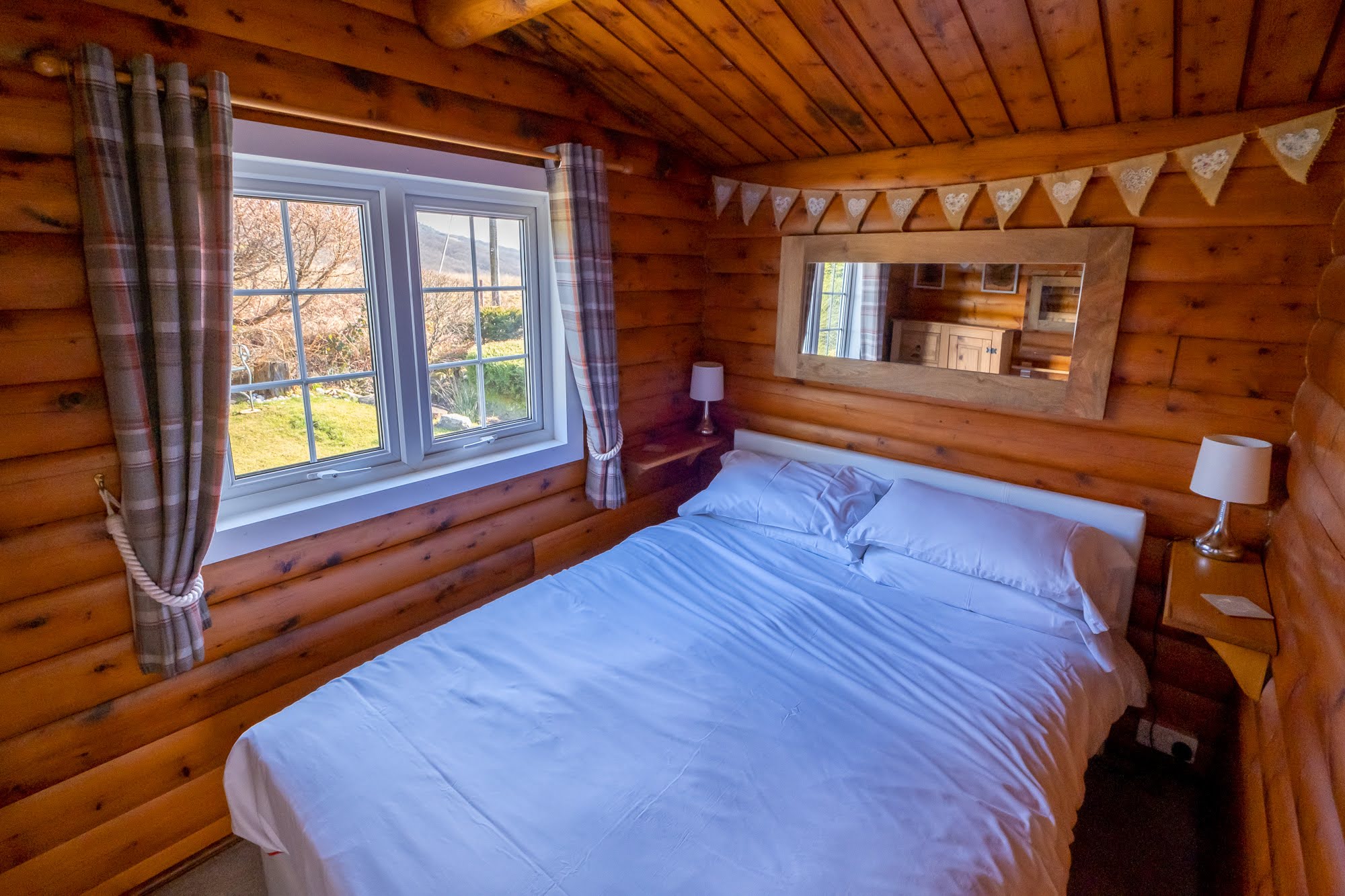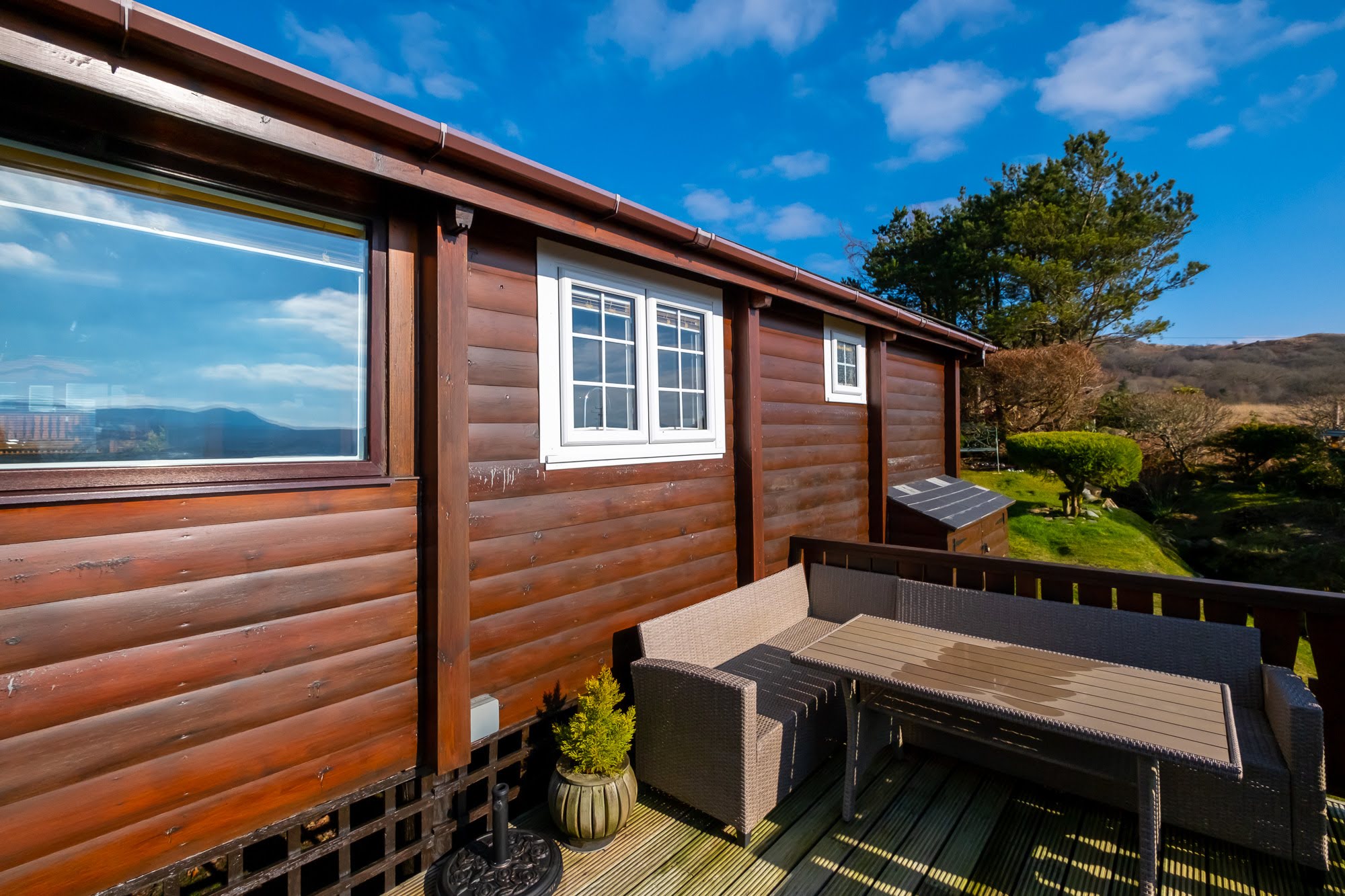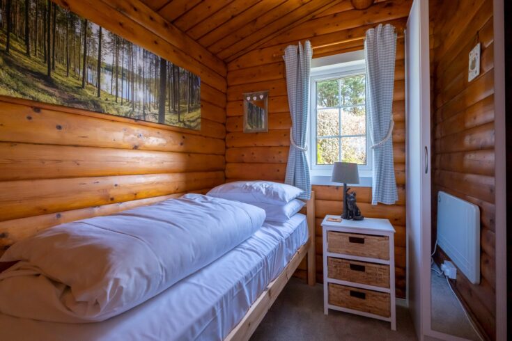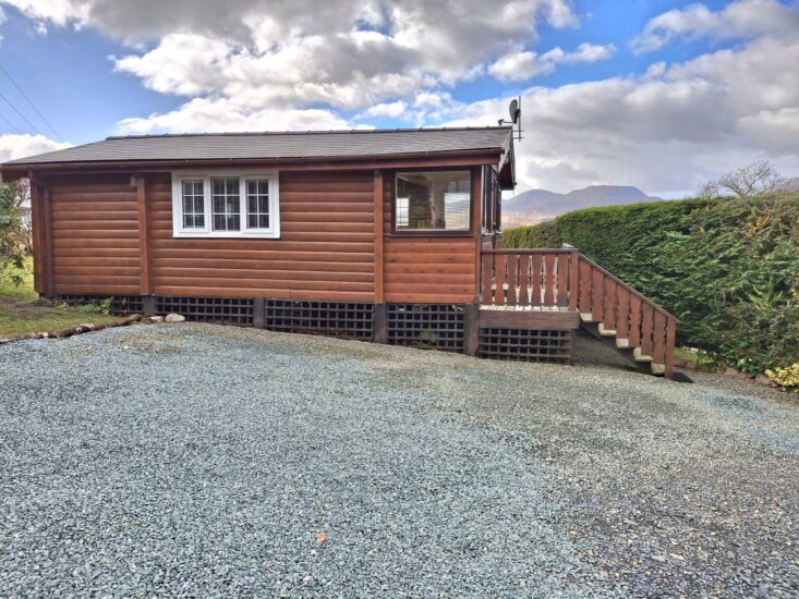 Cabin 254 is a 2-bedroom self catering log cabin sleeping 3 people. It is located on the very edge of the holiday village, with views to Cadair Idris and the Rhinogs and a private garden to the side and rear.