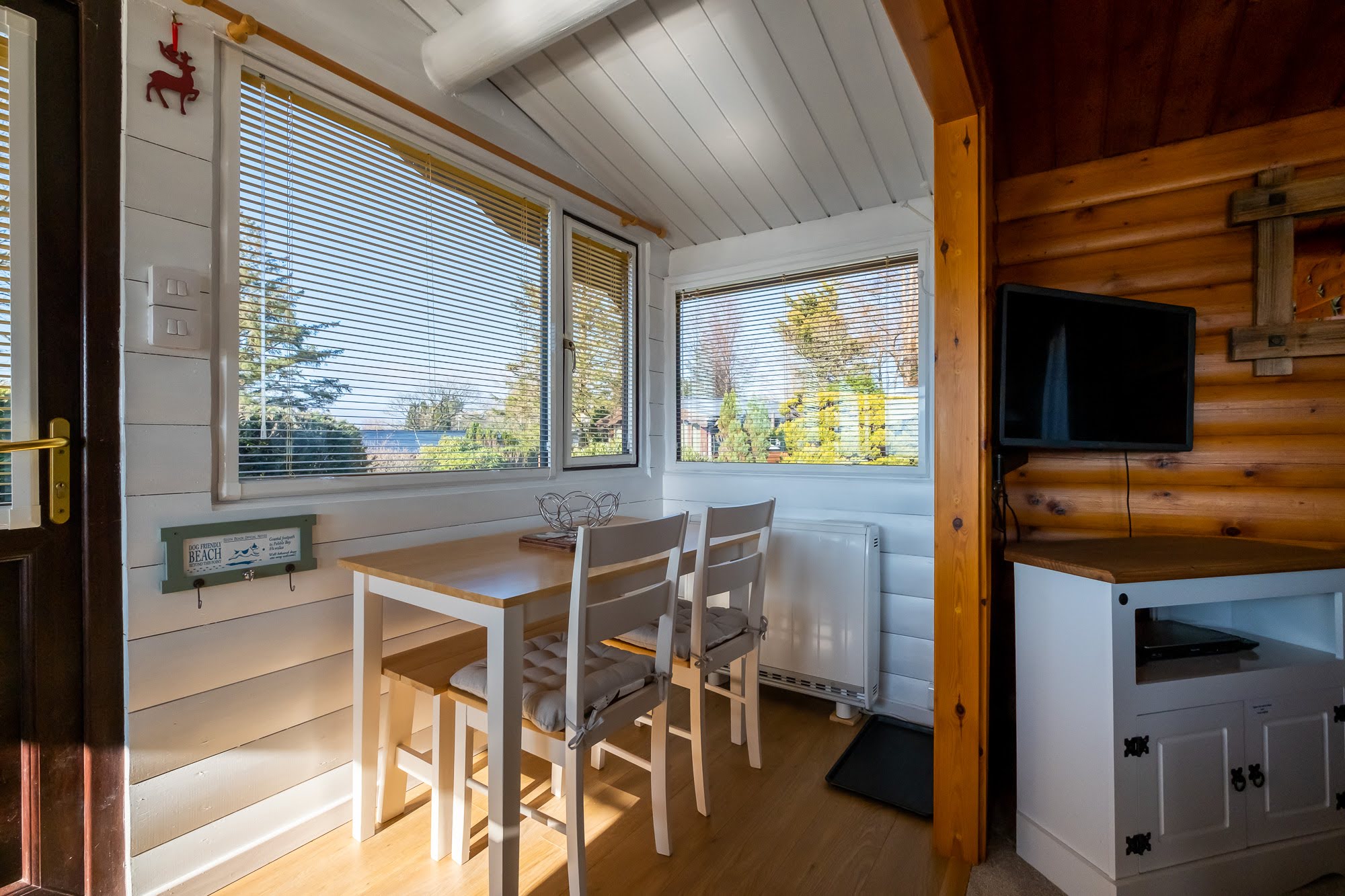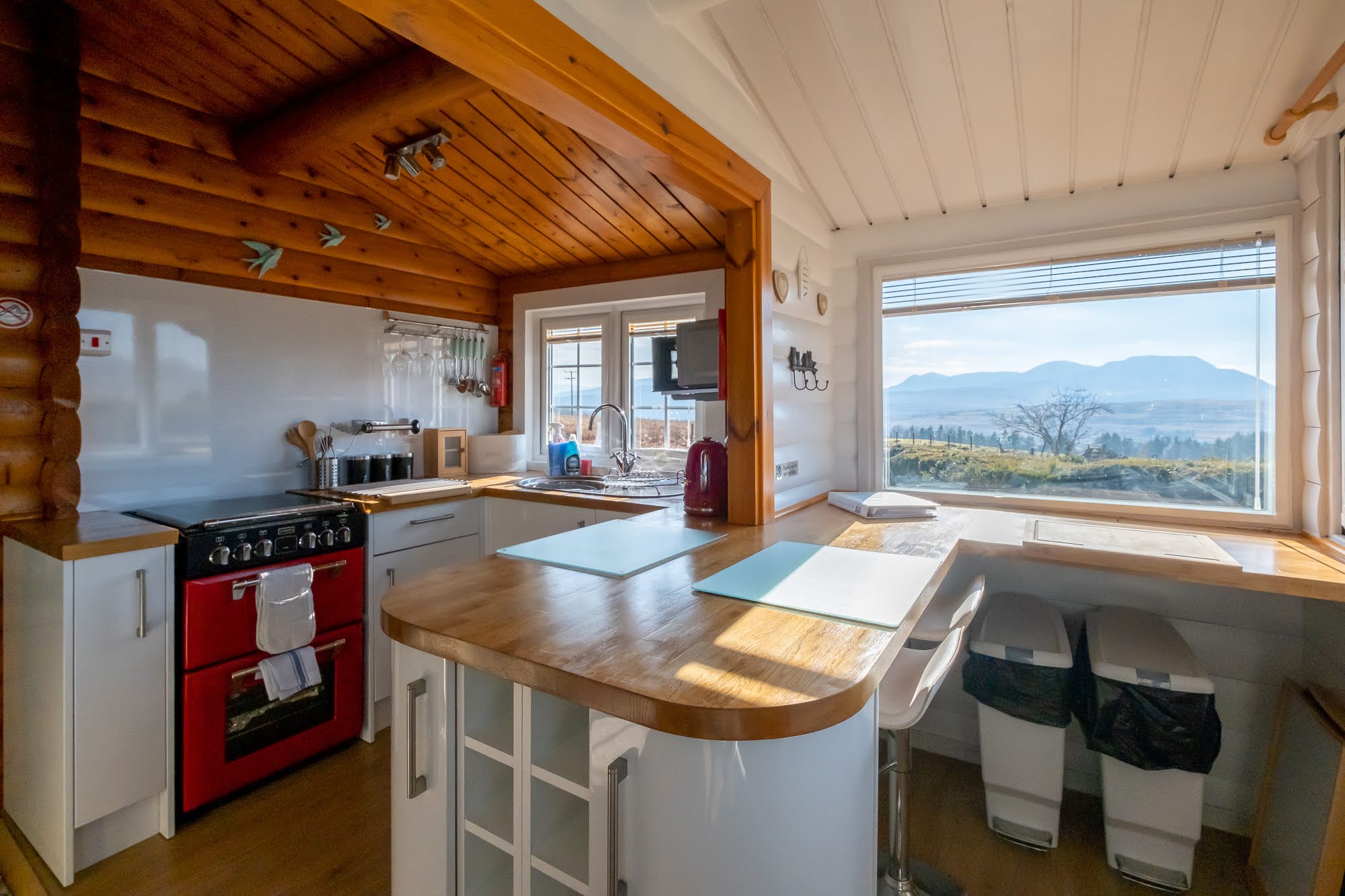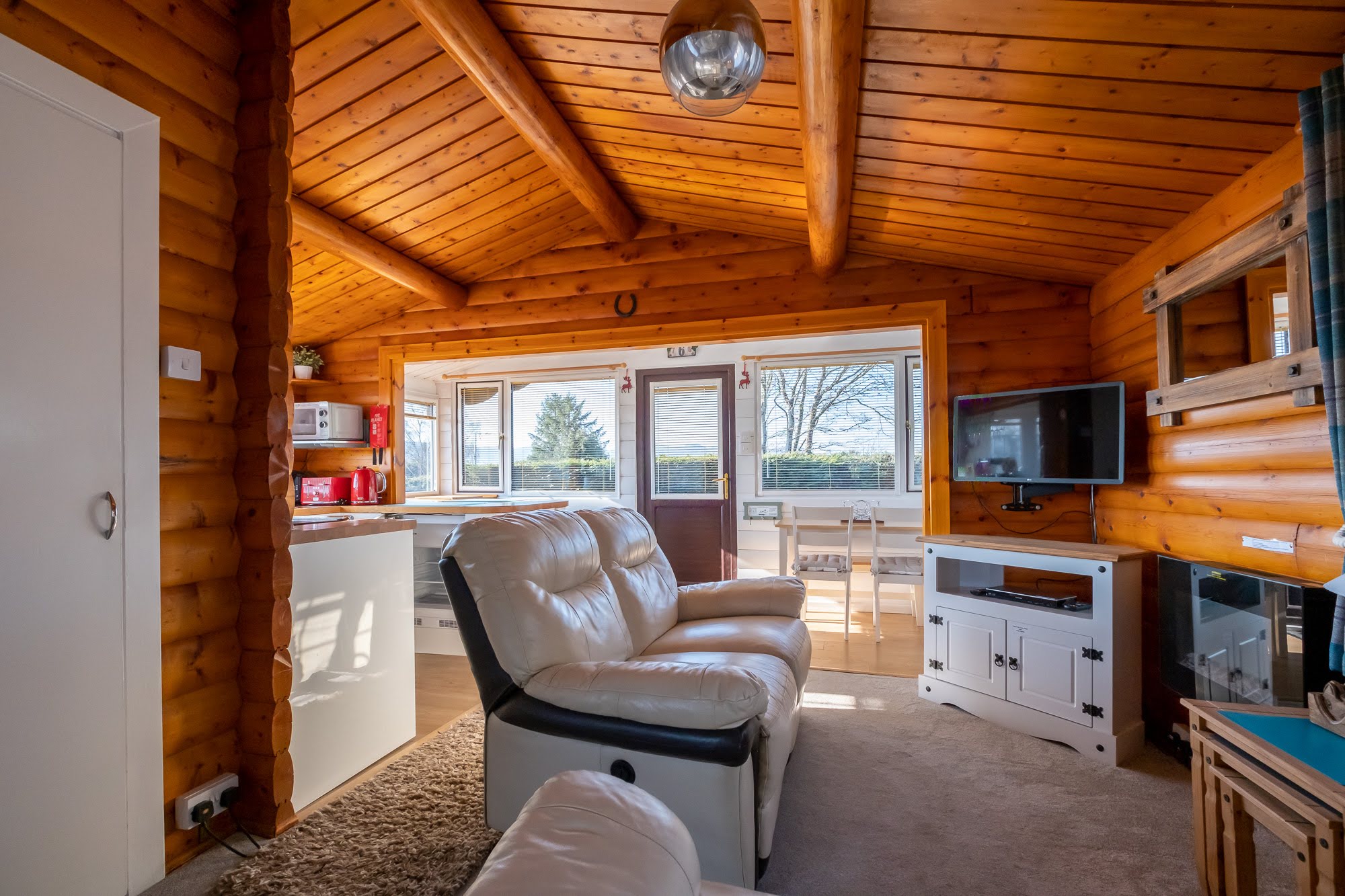 The kitchen has all the essential kitchen appliances including an oven with separate grill, a fitted fridge with ice box, microwave and a breakfast bar for 2 people. We are now offering cleaning materials in each cabin to ensure a comfortable stay with us. These include: Tea towels, dish cloths, sponge scourers, and anti-bac spray.