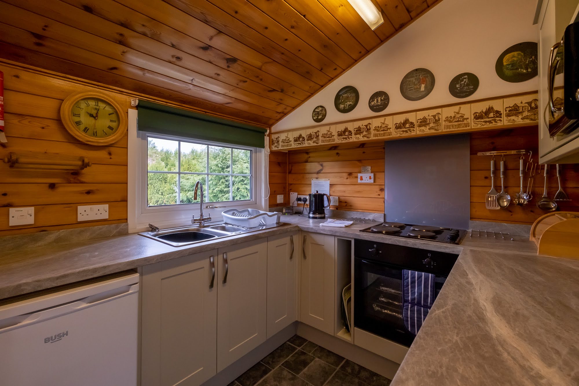 The kitchen-diner has a dining table and 6 chairs as well as all the standard kitchen appliances including a fitted hob and oven, fridge with ice box and microwave. We are now offering cleaning materials in each cabin to ensure a comfortable stay with us. These include: Tea towels, dish cloths, sponge scourers, and anti-bac spray.