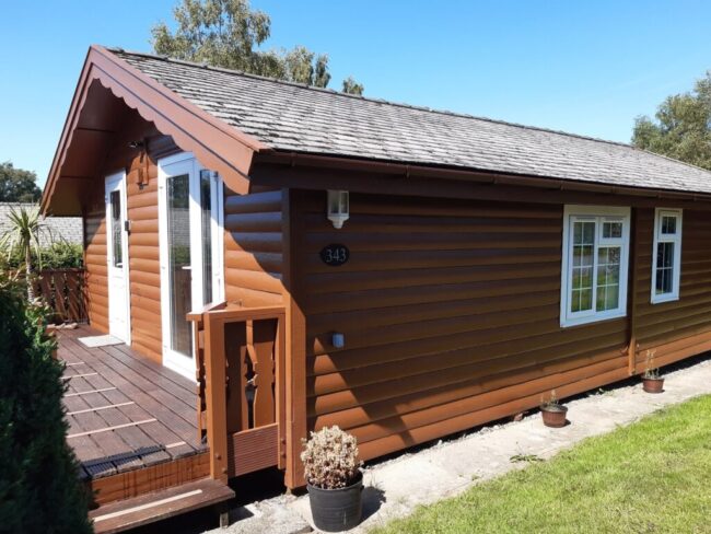Cabin 343 is a large 3-bedroom self catering log cabin sleeping up to 6 people. It benefits from having larger bedrooms than many of the cabins and is located on the outskirts of the play area.