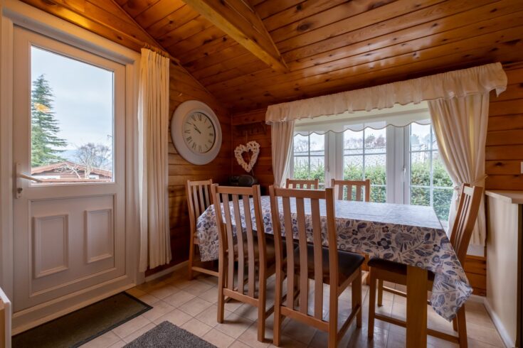 The cabin features an open plan kitchen – diner, with the lounge and bedrooms all being situated off a small corridor towards the back of the cabin.