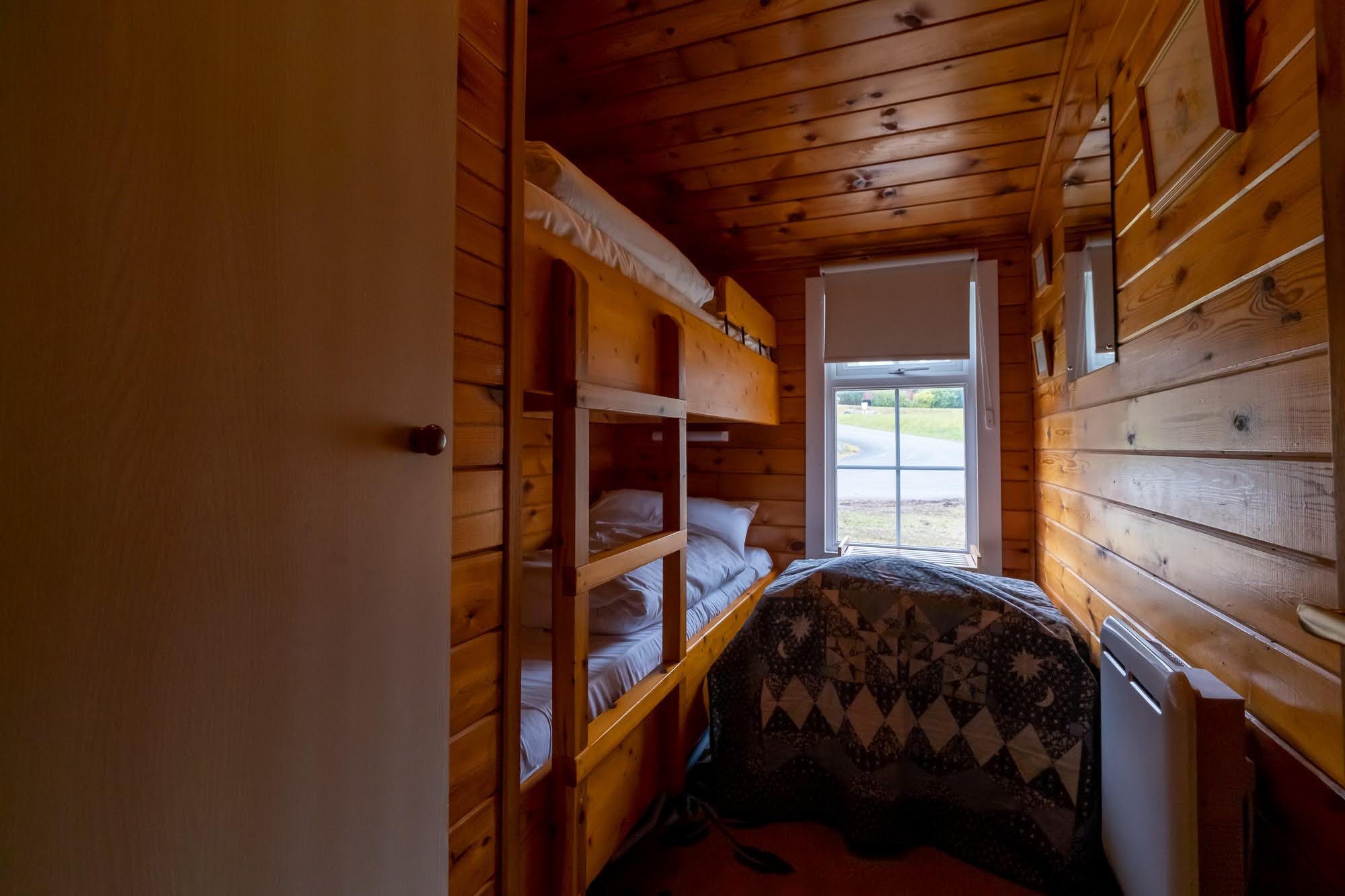 The bathroom is a little larger than the standard cabins and has a large shower. The electric central heating is available from October to End of May. There are also additional heaters available throughout the year and all electricity costs are included.