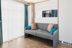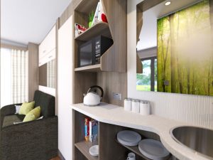 The glamping pods at Hall More and Loch Ness Highland Resort are all high spec, and depending on where you choose to stay have different layouts and features. They all do have a lovely kitchen, ensuite and storage, proper beds and somewhere outside to sit and relax.
