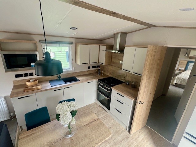 step into stylish comfort with the stunning ABI Beverly located on a riverside plot – a beautifully designed 39’ x 12’ Holiday Home that blends contemporary living with all the comforts of home. This two-bedroom model offers a spacious open-plan layout, perfect for relaxing or entertaining, complete with a modern kitchen, integrated appliances, and a bright, airy lounge. The master bedroom features ample storage and a cosy retreat, while the second bedroom is perfect for guests or family. Finished to a high standard throughout, the ABI Beverly is ideal for those seeking a sophisticated yet practical holiday home.