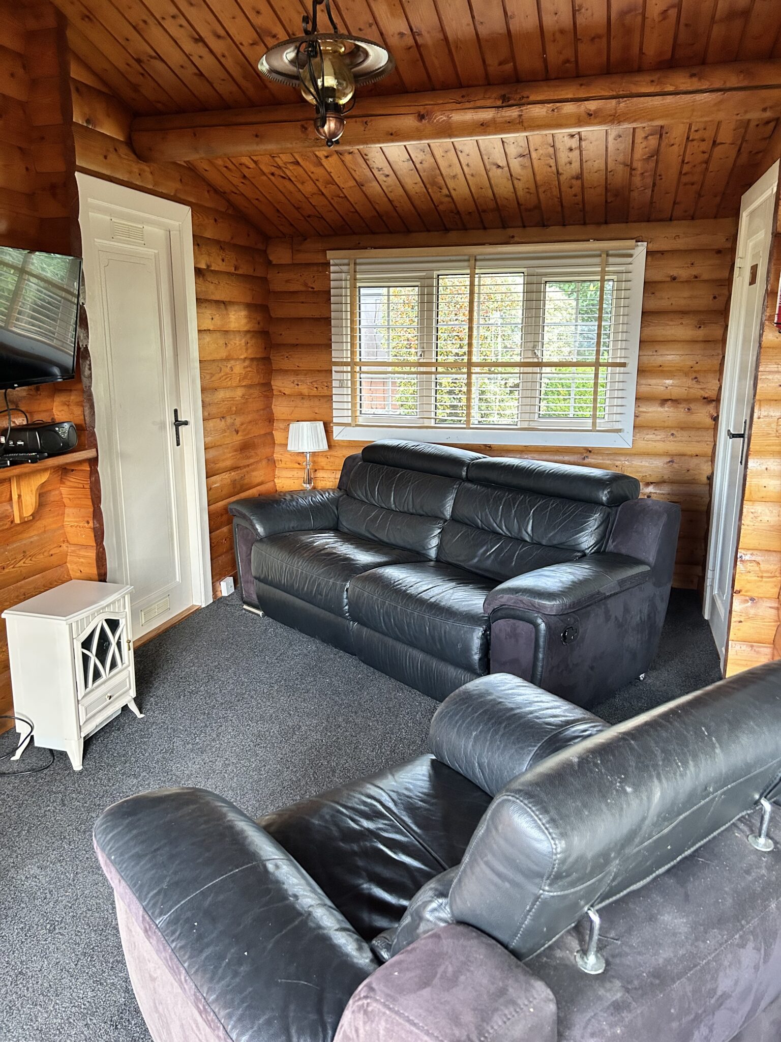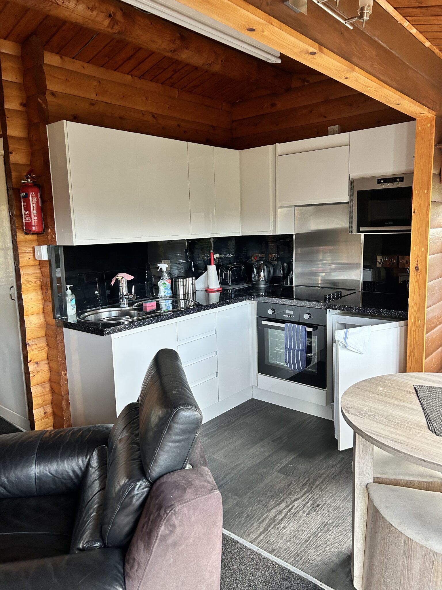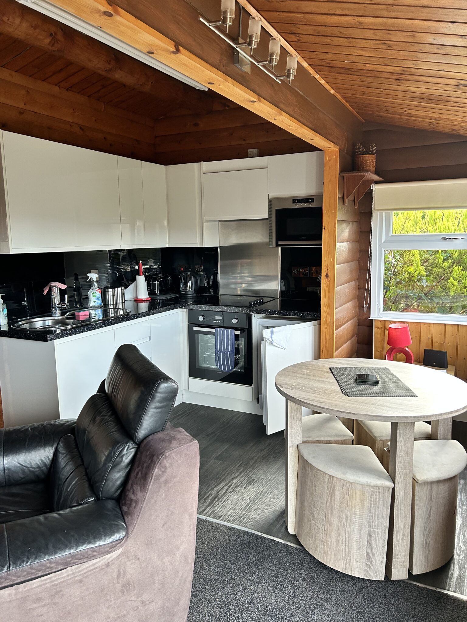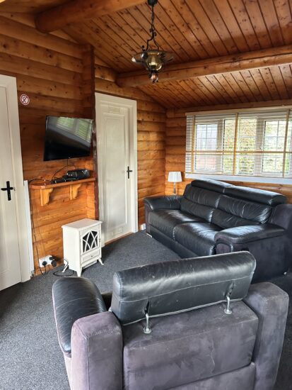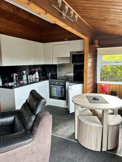 Escape to tranquility in this modern lodge, where rustic charm meets contemporary design. Featuring an open floor plan and large windows, this cabin seamlessly blends natural materials like wood and stone with modern amenities. The cosy interior boasts textured materials, a warm ambiance, and functional conveniences, while integrated technology ensures a comfortable stay. The kitchen includes high-end appliances, and the bedrooms and bathrooms prioritise privacy and relaxation. Outside, a welcoming decking invite you to enjoy the surrounding natural beauty.