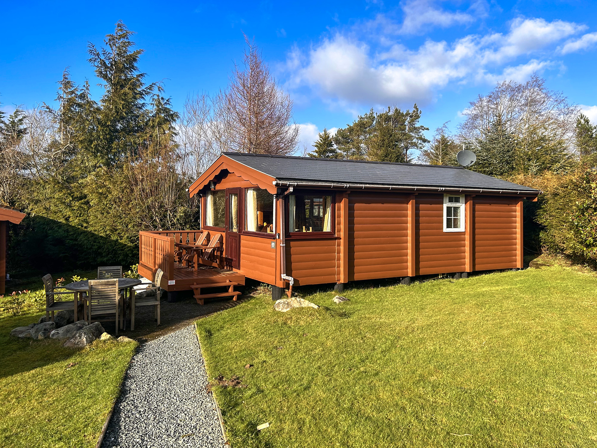 Imagine escaping to a modern lodge, a perfect blend of rustic charm and contemporary design. This holiday home features an open floor plan, accentuated by large windows that invite natural light and offer stunning views. The use of natural materials, such as wood and stone, creates a warm and inviting atmosphere. Step outside onto your private decking, perfect for enjoying the fresh air. Inside, you’ll find a cosy ambiance enhanced by modern lighting and minimalist conveniences. The integrated technology ensures seamless connectivity, while sustainable materials reflect a commitment to eco-friendly living. Bathrooms and bedrooms are designed for privacy and comfort, and the kitchen boasts high-end appliances, making meal preparation a delight.