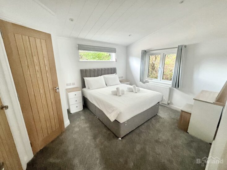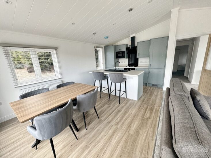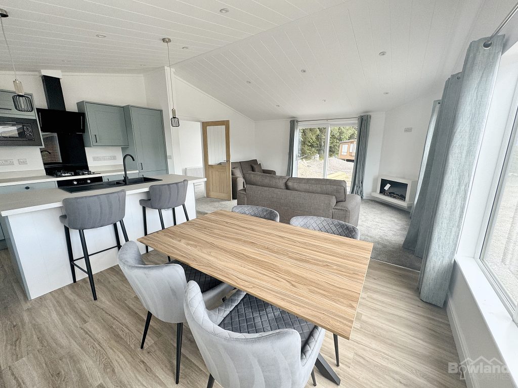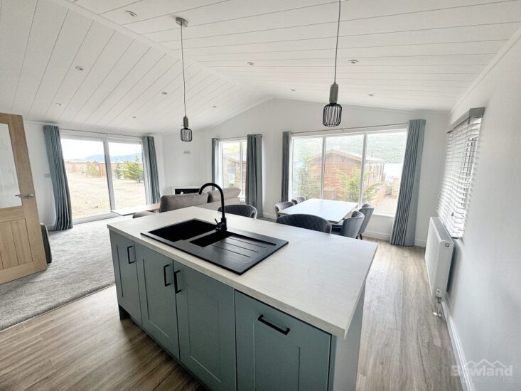 Discover the perfect blend of modern luxury and natural beauty in the Lakeland Lodge. This holiday home boasts natural materials and clean lines, featuring large windows that flood the space with light. Step inside to an open floor plan with textured materials creating a cosy ambiance. The integrated kitchen comes with high-end appliances, and the bedrooms and bathrooms offer privacy and comfort. Enjoy outdoor living on the decking. Sustainable design elements ensure energy efficiency, while rustic touches like exposed beams add character. This lodge offers a perfect retreat and is designed for relaxation and enjoyment.