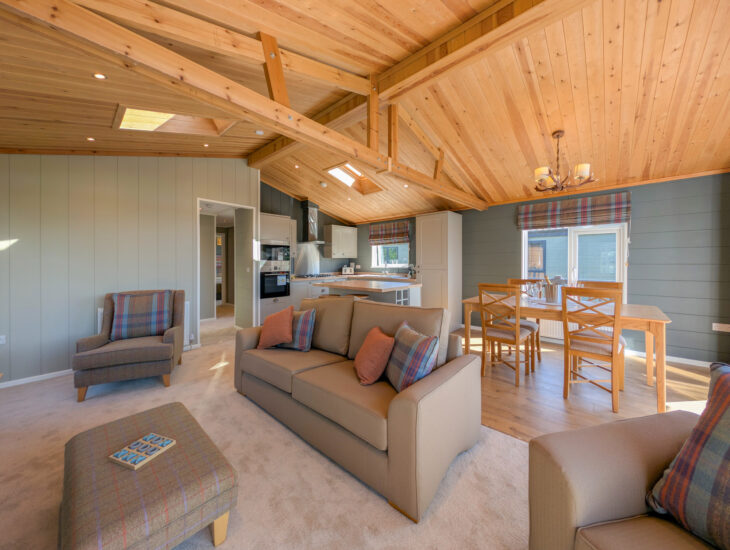 Discover the rural charm of the Forester Lodge, a lavish and inviting getaway. This holiday home features a vaulted timber ceiling, rustic beams, and a stunning fireplace, creating the perfect ambiance for relaxation. Functionality meets elegance with sensible design elements, including a practical book and utility room with ample storage, sturdy entrance flooring, solid oak interior doors, and stylish freestanding bedroom furniture. The Forester Lodge has modern blends of rustic charm with contemporary design, boasting an open floor plan and large windows that invite natural light. Natural materials like wood and stone enhance the home’s appeal, while modern amenities ensure a comfortable and sustainable living experience.