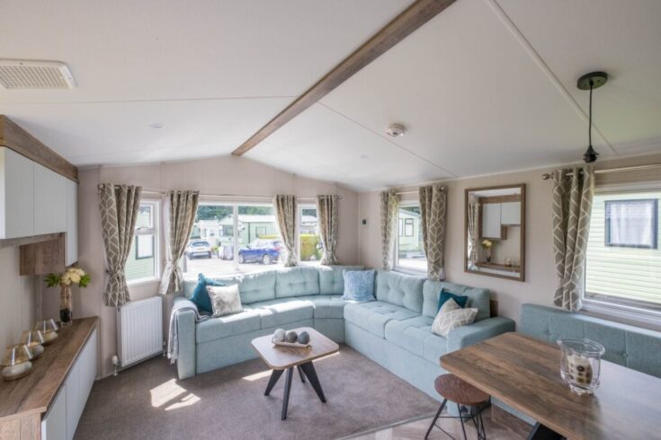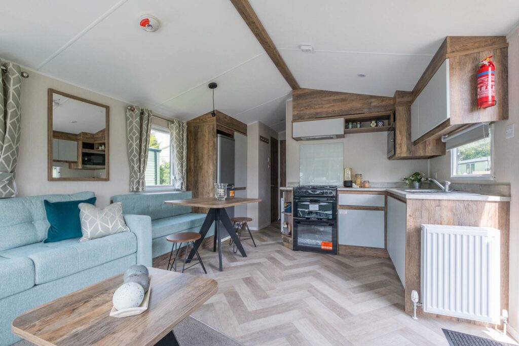 Discover the Willerby Brookwood, where rustic charm meets contemporary design. This exquisite holiday home features an open floor plan, creating a spacious and inviting atmosphere. Large windows flood the interior with natural light, showcasing the beautiful blend of natural materials like wood and stone. Enjoy modern amenities and sustainable practices integrated seamlessly throughout. The exterior boasts clean lines and simple forms. Inside, textured materials add warmth, while modern lighting and minimalist conveniences ensure functionality. Relax in comfortable bedrooms with features like walk-in wardrobes, and prepare culinary delights in the high-end kitchen. This holiday home offers a perfect blend of comfort and style.