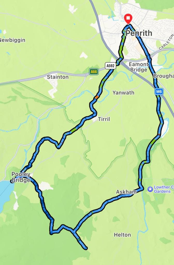 Starting from Lowther Holidy Park you head past Lowther Castle and Gardens, up and over the hills to Pooley Bridge, taking in the stunning view to Ullswater. From Pooley Bridge, back to Penrith for a coffee and slice of cake, and then loop back to Lowther. Its a great walk, and if you time the walk right, you can watch the sun setting over Ullswater, just stunning.