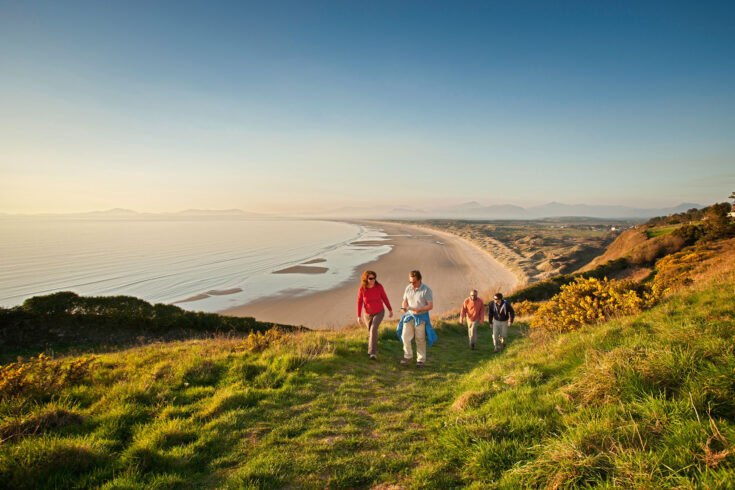 Harlech Beach provides a four-mile stretch of pristine golden sand and back by sandy dunes. With stunning views of the Snowdonia mountain range. The Morfa Harlech National Nature Reserve at the north end of the beach is Wales’s only growing dune system and provides a good example of the effects of longshore drift.